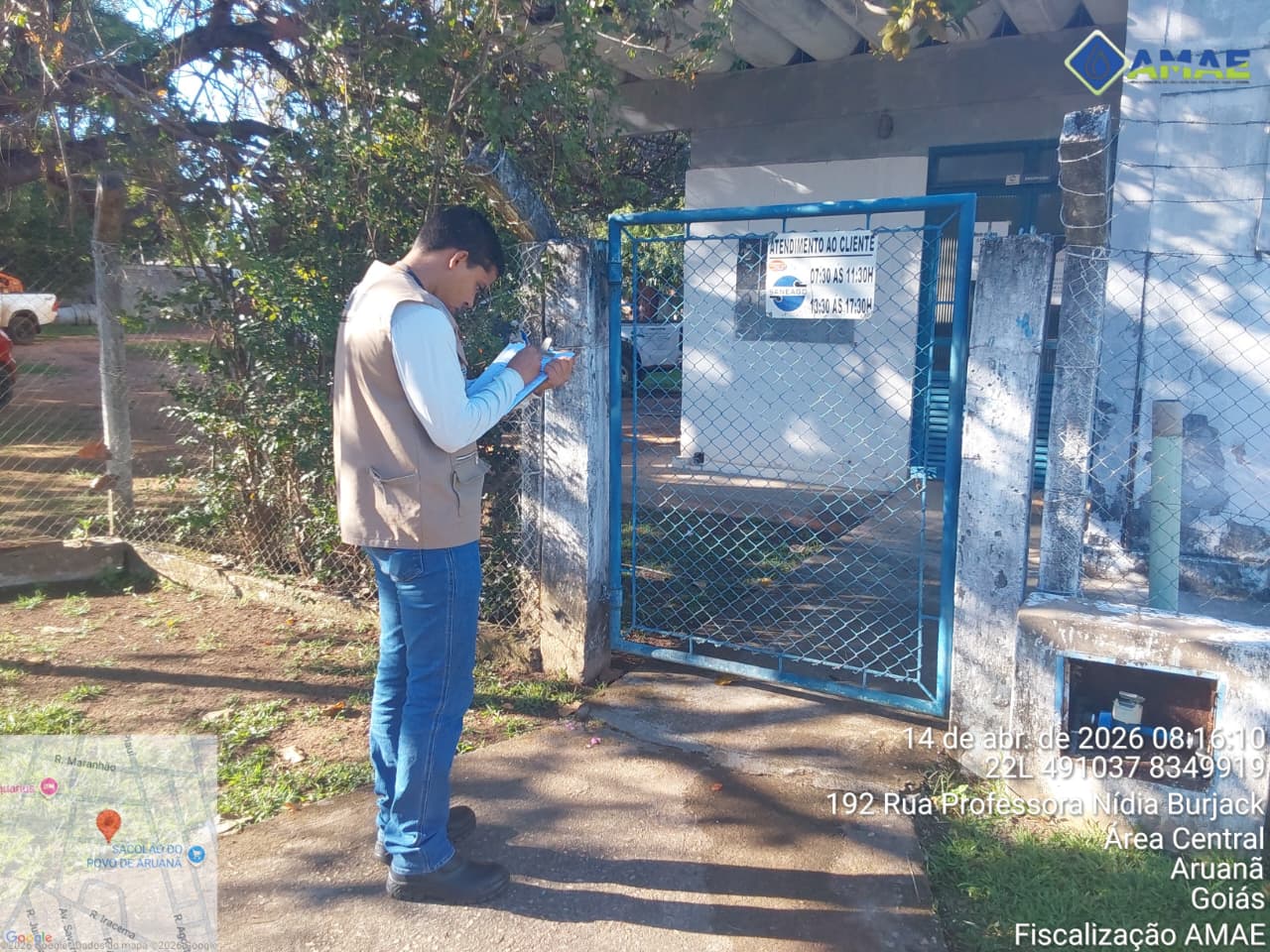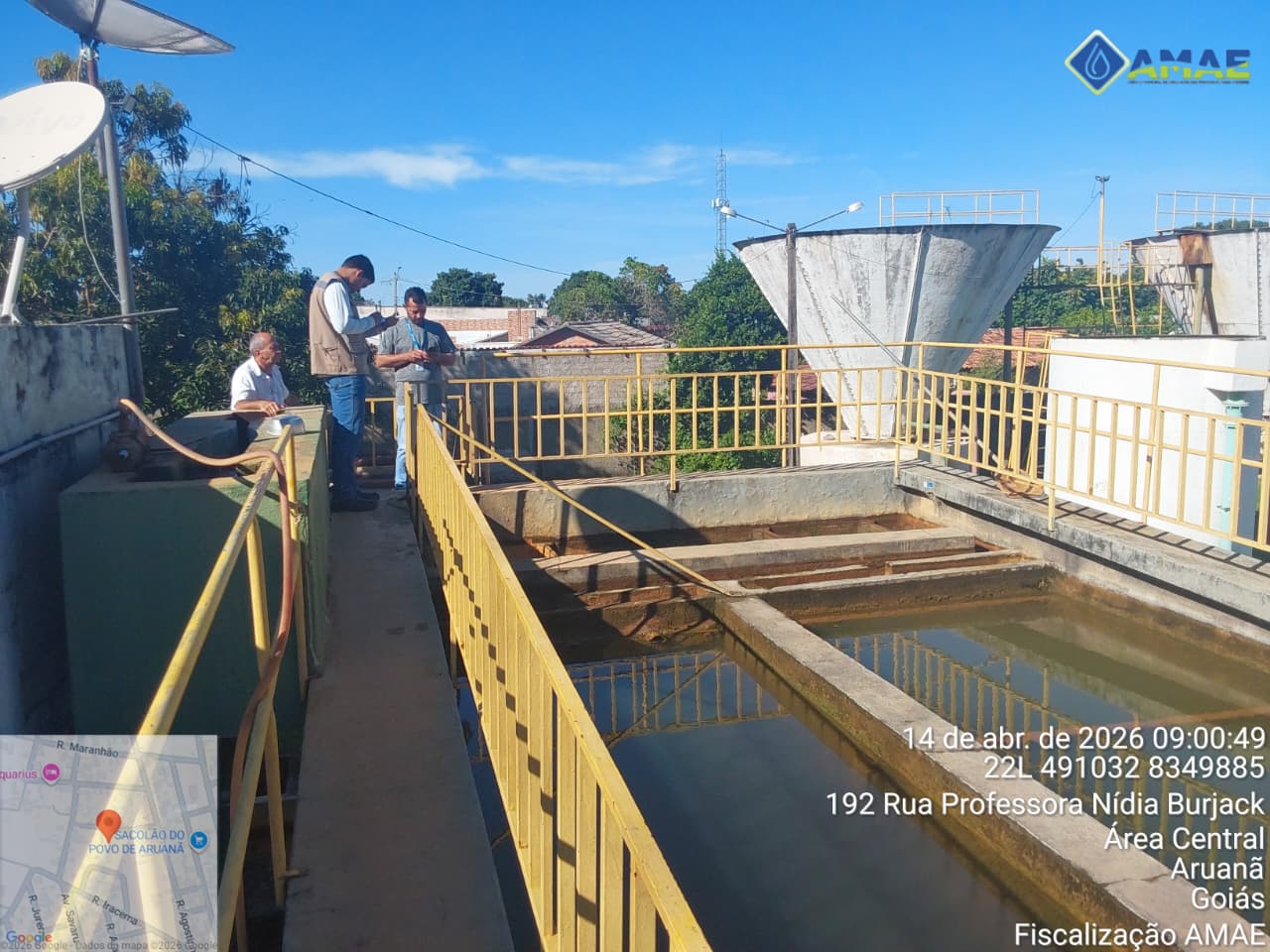 Entre os dias 13 e 16 de abril, a equipe técnica da AMAE promoveu uma fiscalização programada no município de Aruanã, com vistorias nos sistemas de abastecimento de água e de esgotamento sanitário.