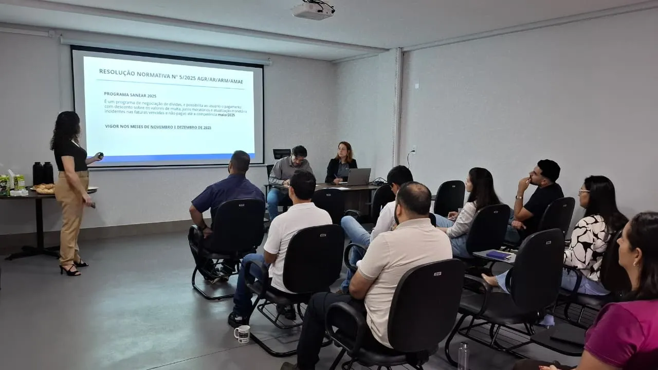 A reunião teve início com a aprovação da ata da sessão anterior, seguida da apresentação dos novos servidores convocados por meio de concurso público: um Analista de Fiscalização e uma Analista de Regulação – Economista, que se juntam à equipe técnica da AMAE para fortalecer as ações de monitoramento e regulação dos serviços de saneamento básico.