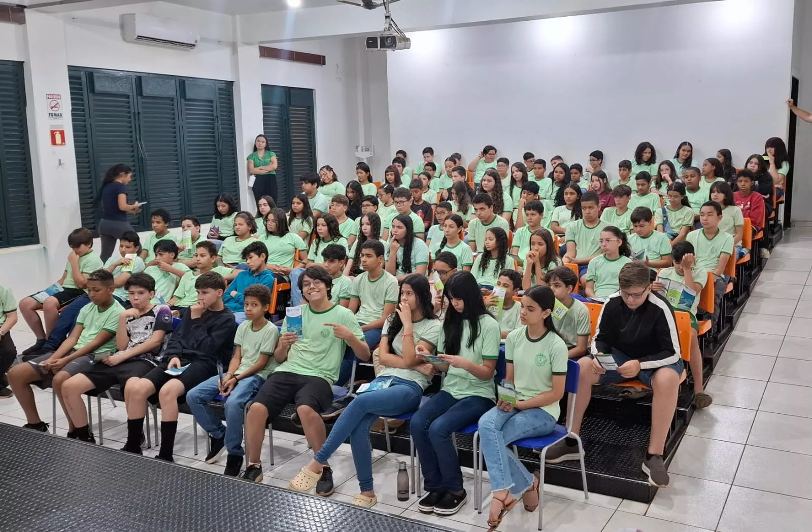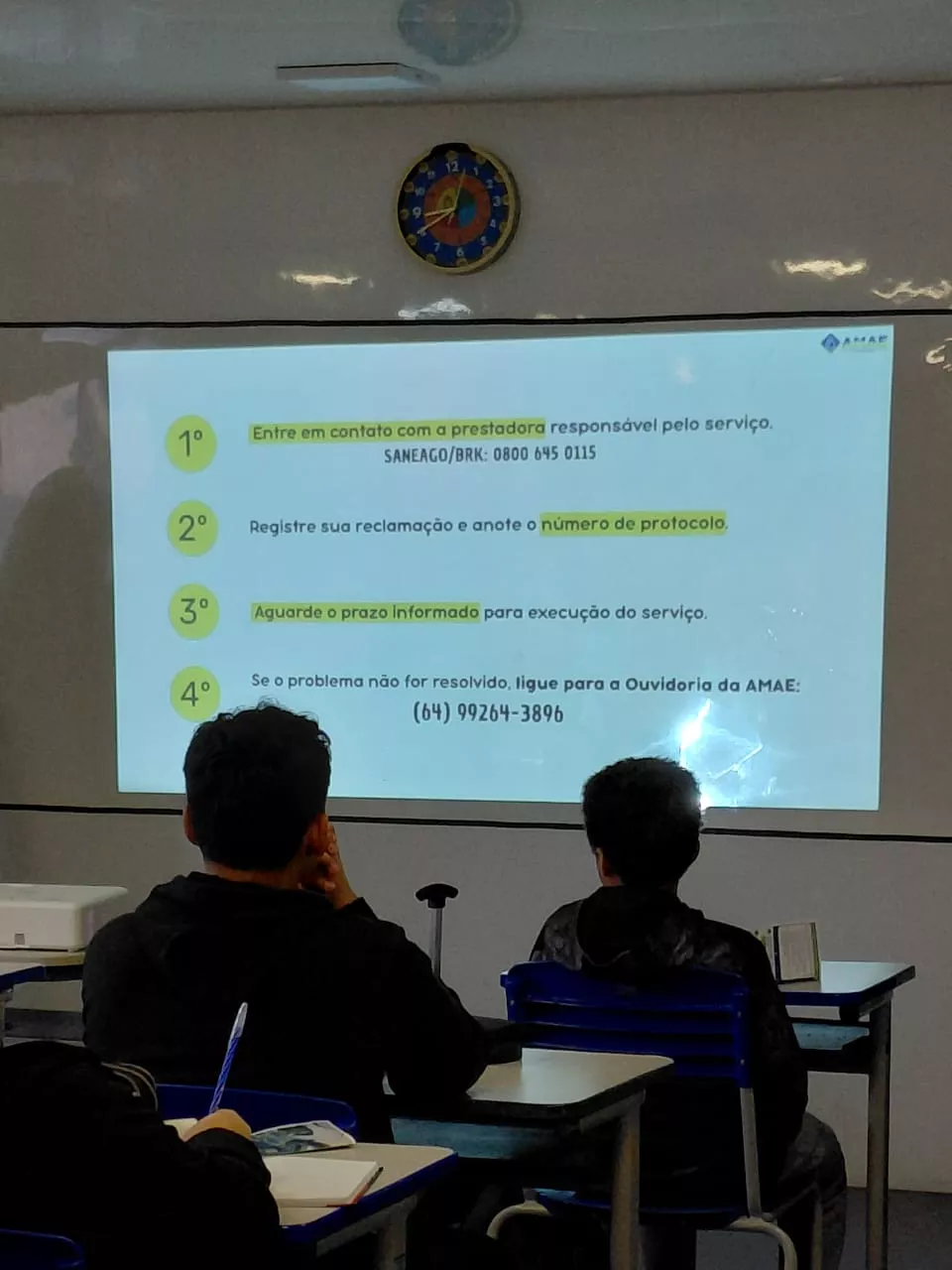 Nesta semana, a equipe da AMAE promoveu um conjunto de palestras voltadas aos estudantes do 7º ano do Ensino Fundamental da rede municipal de Rio Verde. Ao todo, aproximadamente 700 alunos foram alcançados pela ação.