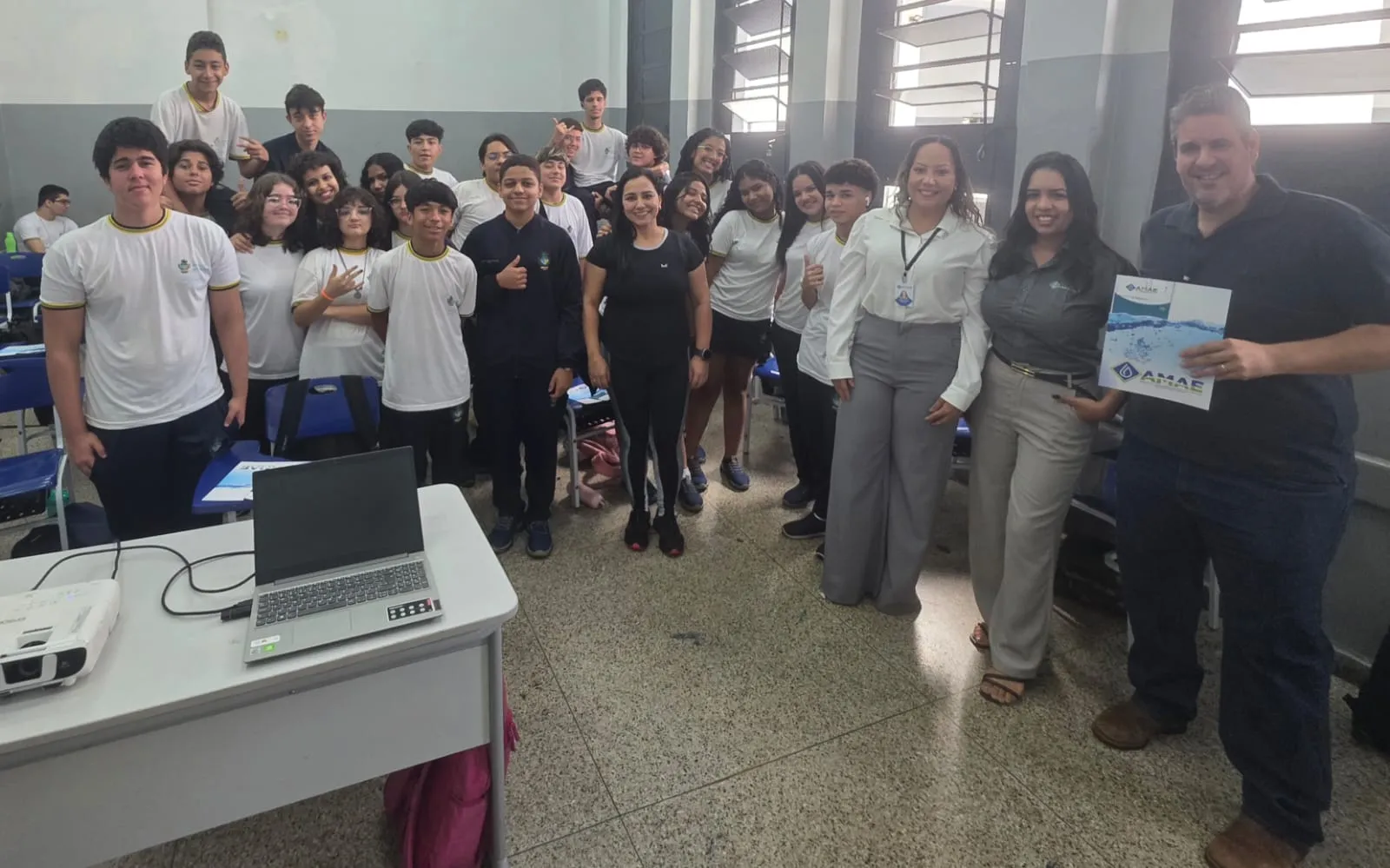 Nesta sexta-feira (31/10), a AMAE ministrou uma palestra educativa aos alunos do 1º ano do Colégio Estadual Martins Borges, abordando temas fundamentais relacionados ao saneamento e à sustentabilidade.