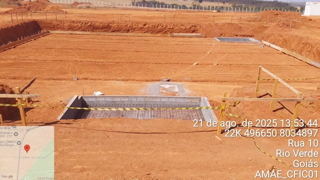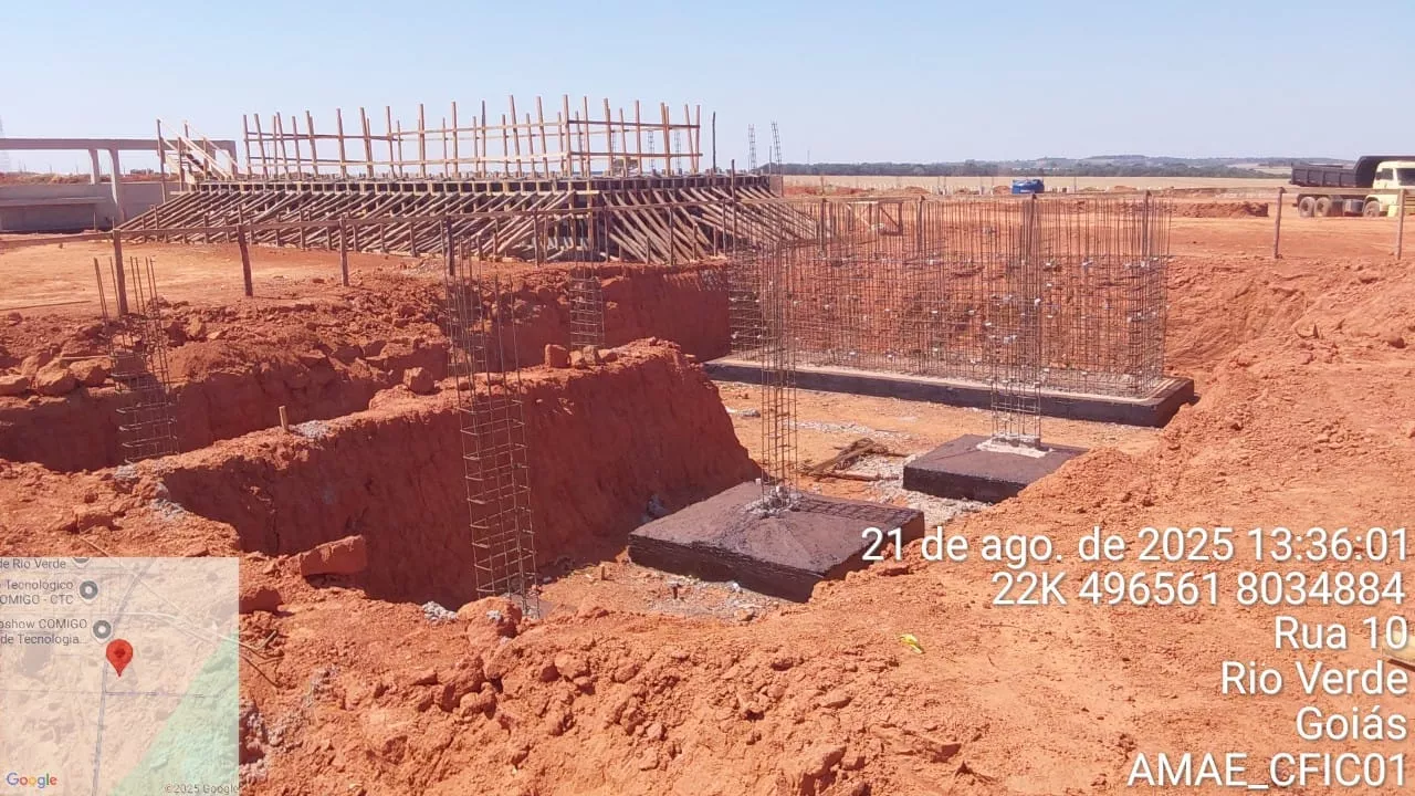 Na última visita técnica, realizada há cerca de um mês, haviam sido verificadas as etapas estruturais iniciais. Na fiscalização atual, constatou-se que as obras permanecem em fase de fundação e mesoestrutura, em conformidade com o cronograma previsto e em condições satisfatórias de execução.
